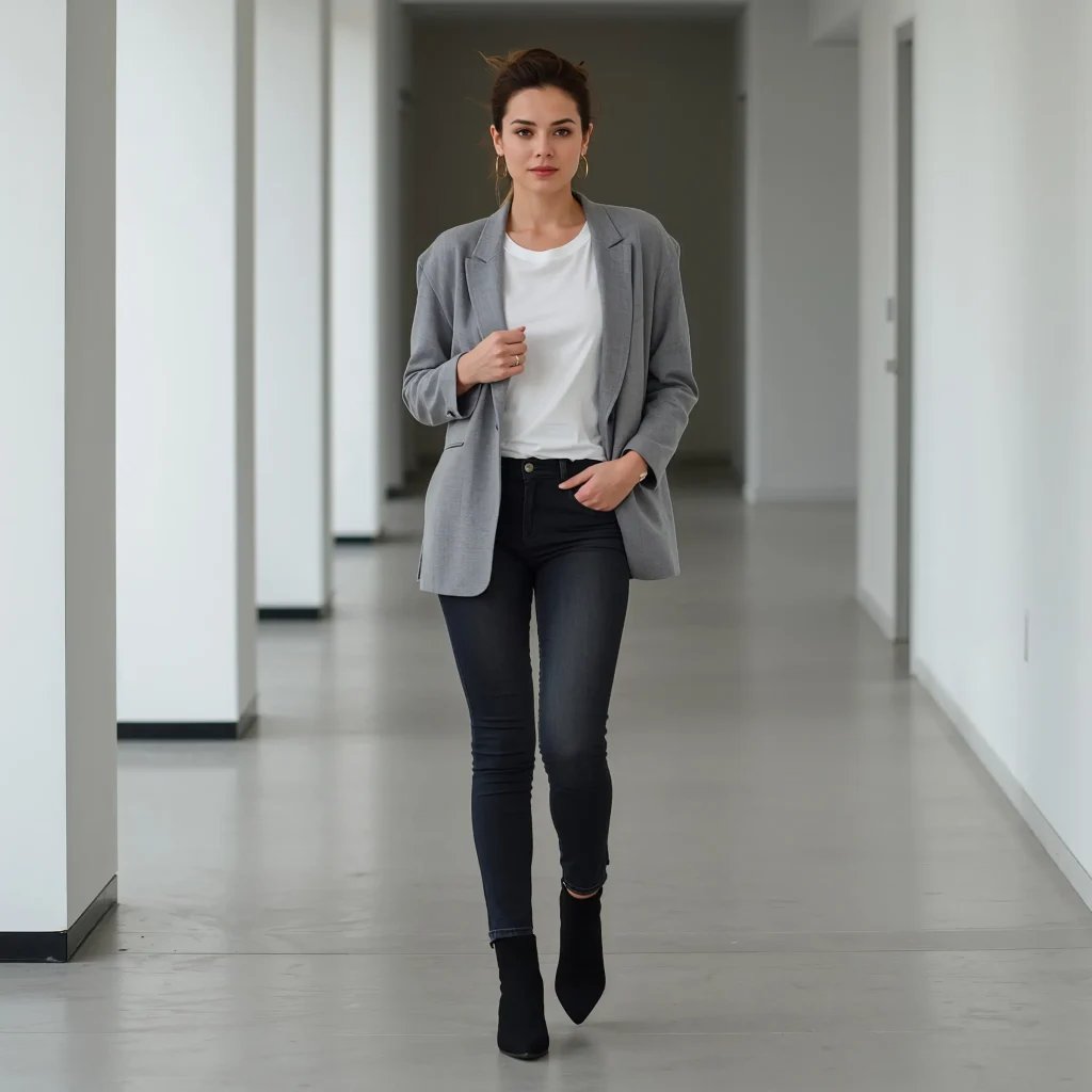 Who says jeans can’t be office-appropriate? The trick lies in choosing the right pair and styling them correctly. Dark wash stretch jeans without distressing are your best friend here. They move with you throughout the day and still look professional enough for most business casual environments.