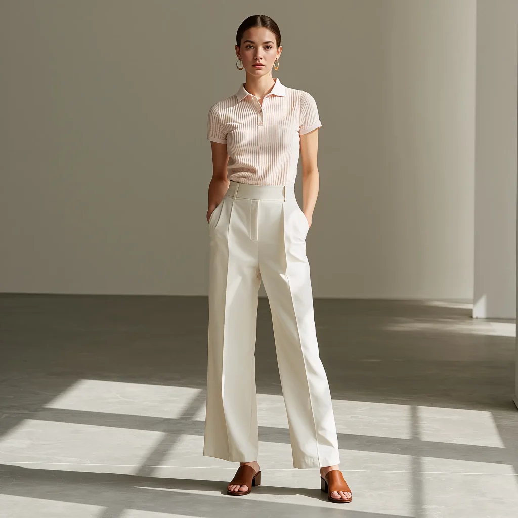 Knitted polos bring this retro-cool vibe that feels fresh and modern. They’re more interesting than a basic tee but less formal than a button-up. Wide-leg pants balance the fitted nature of the polo while adding drama and movement to your outfit.
