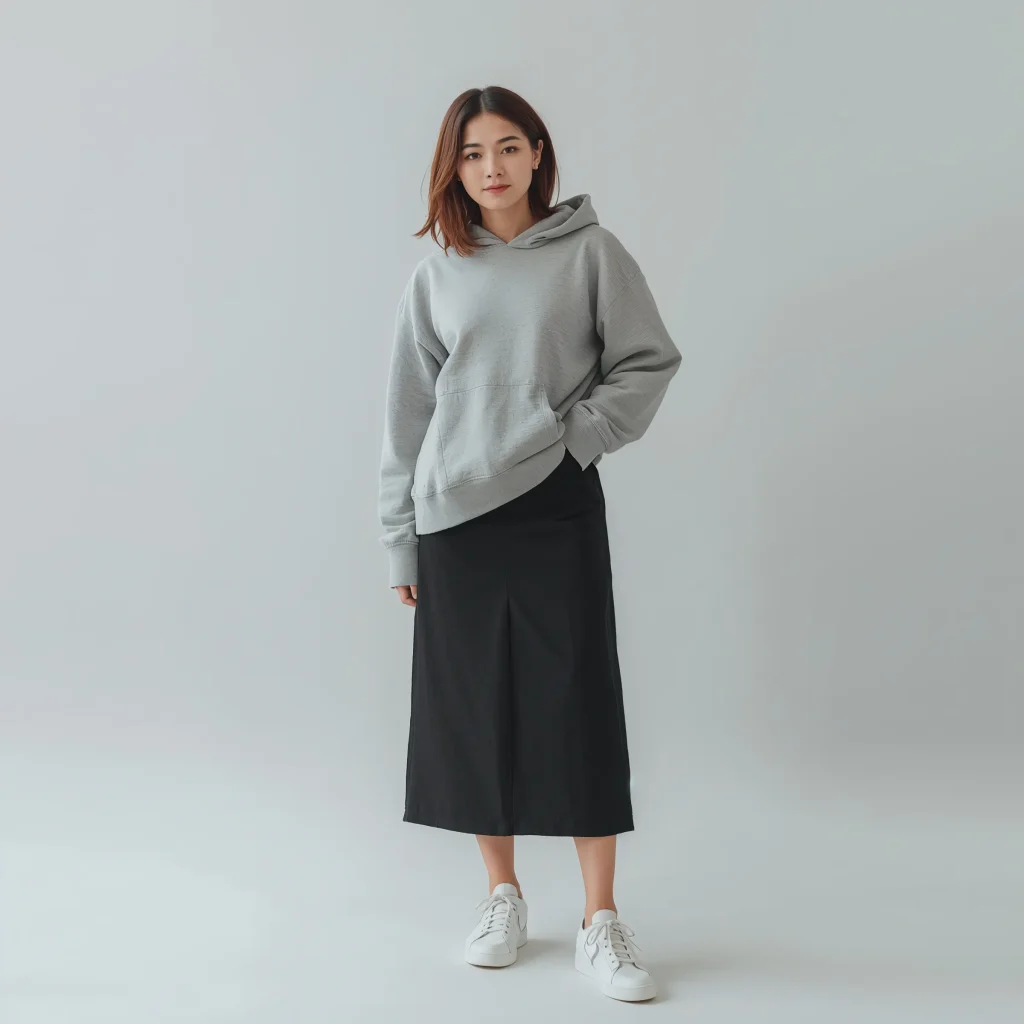 This combination works because of the unexpected contrast. The hoodie brings casual comfort while the business skirt maintains professionalism. I discovered this combo on a particularly rough Monday, and it’s become my secret weapon for days when I need comfort but still have important meetings.