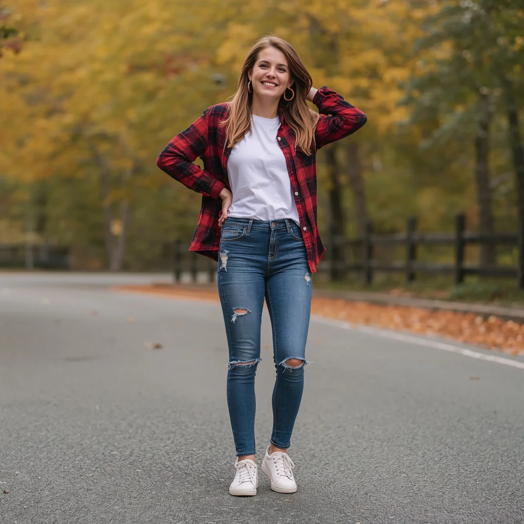 I like to wear my flannel open over a fitted tank or crop top, with high-waisted distressed jeans and combat boots. The key is choosing a flannel that fits well through the shoulders – oversized is cool, but swimming in fabric isn’t the move.