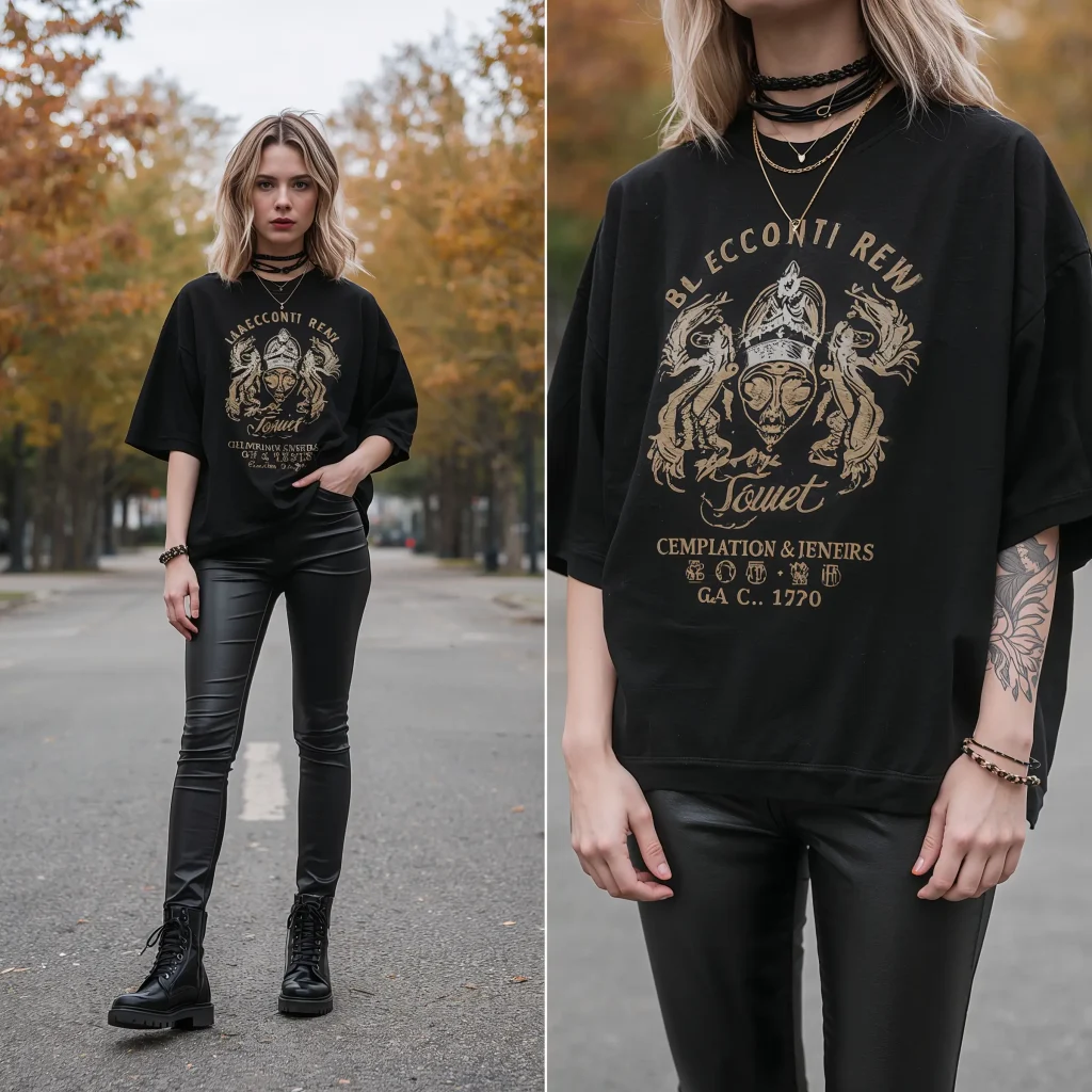 Let’s talk about the outfit that makes you feel like you could jump on stage and nobody would question it. Faux leather pants paired with your favorite graphic tee creates instant rock star energy.