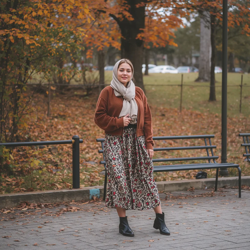 Corduroy screams fall, and I’m here for it. A corduroy jacket paired with a flowy midi skirt creates this perfect vintage-inspired look.