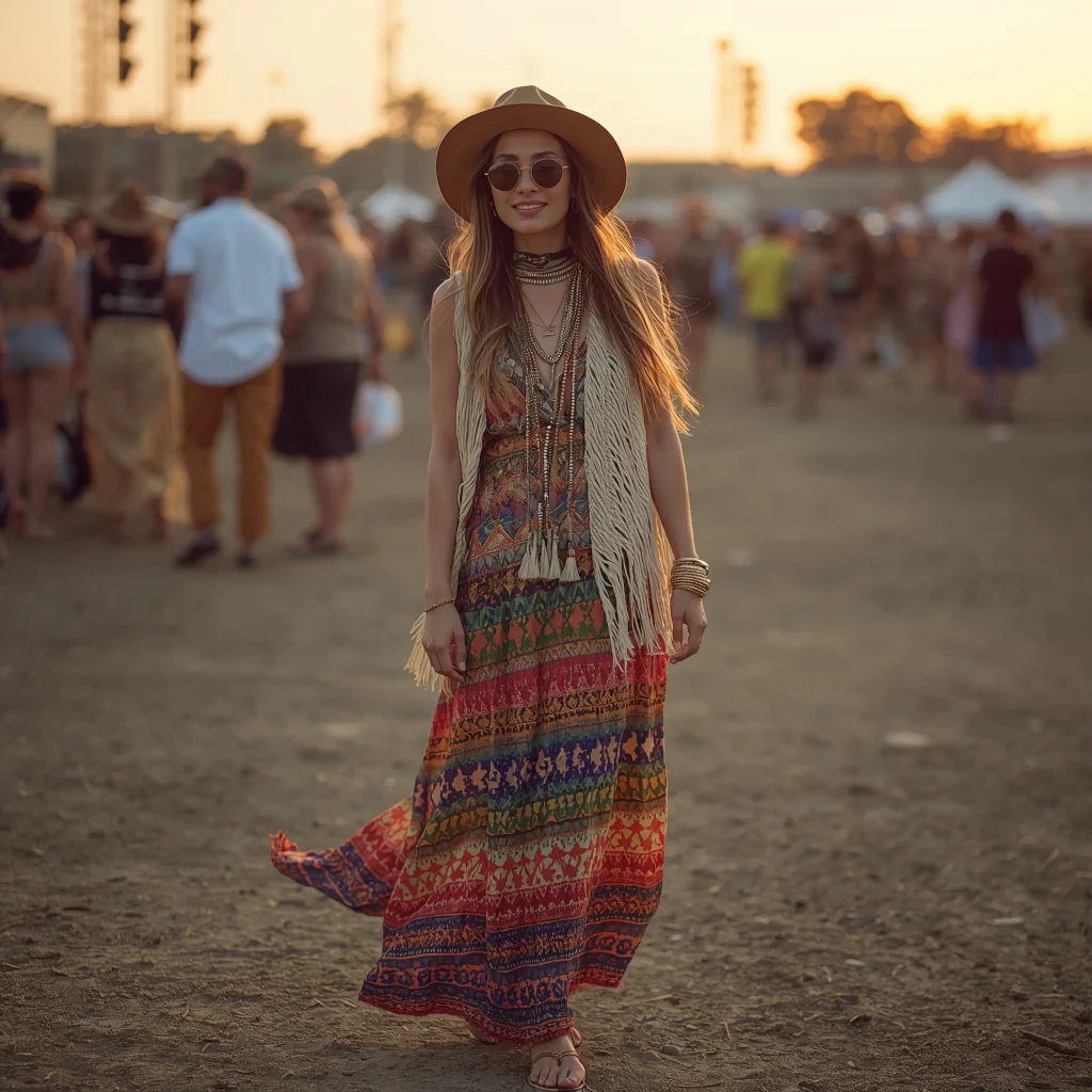 Who says you can’t bring those Coachella vibes to any concert? The boho look works everywhere from outdoor amphitheaters to intimate venues, and honestly, it’s one of the most comfortable options out there.