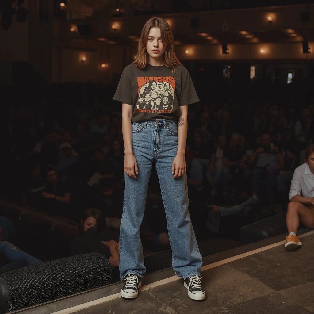 The trick is making it look intentional, not like you just rolled out of bed. Choose jeans that fit impeccably – whether that’s mom jeans, straight leg, or skinny. Tuck in the tee partially or tie it at the waist.