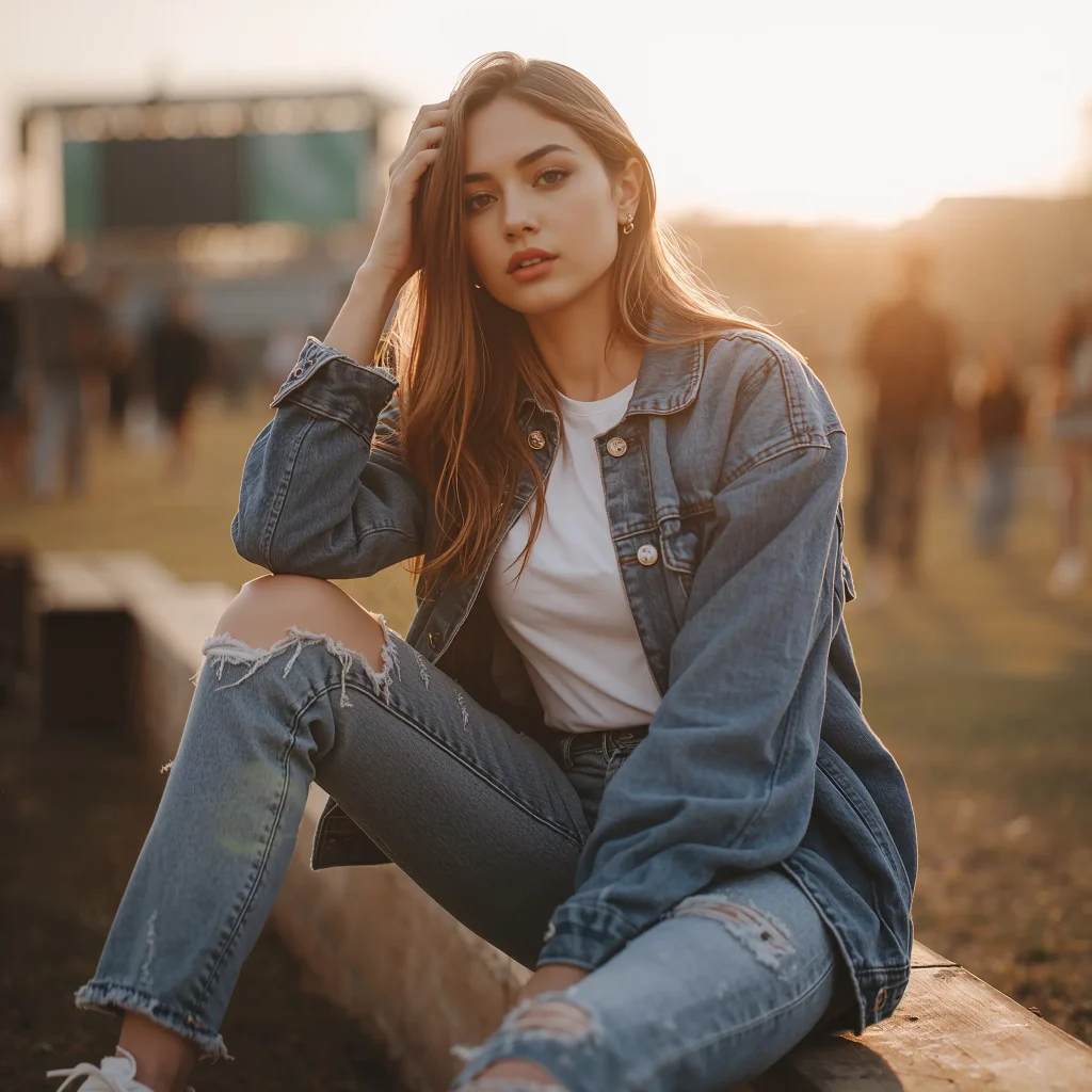 Sometimes you want to look effortlessly cool without trying too hard. Enter the casual denim ensemble – your foolproof concert outfit that works for literally any music genre. Pair your favorite jeans with a simple tank or tee, then elevate with a denim jacket for that coveted Canadian tuxedo vibe.