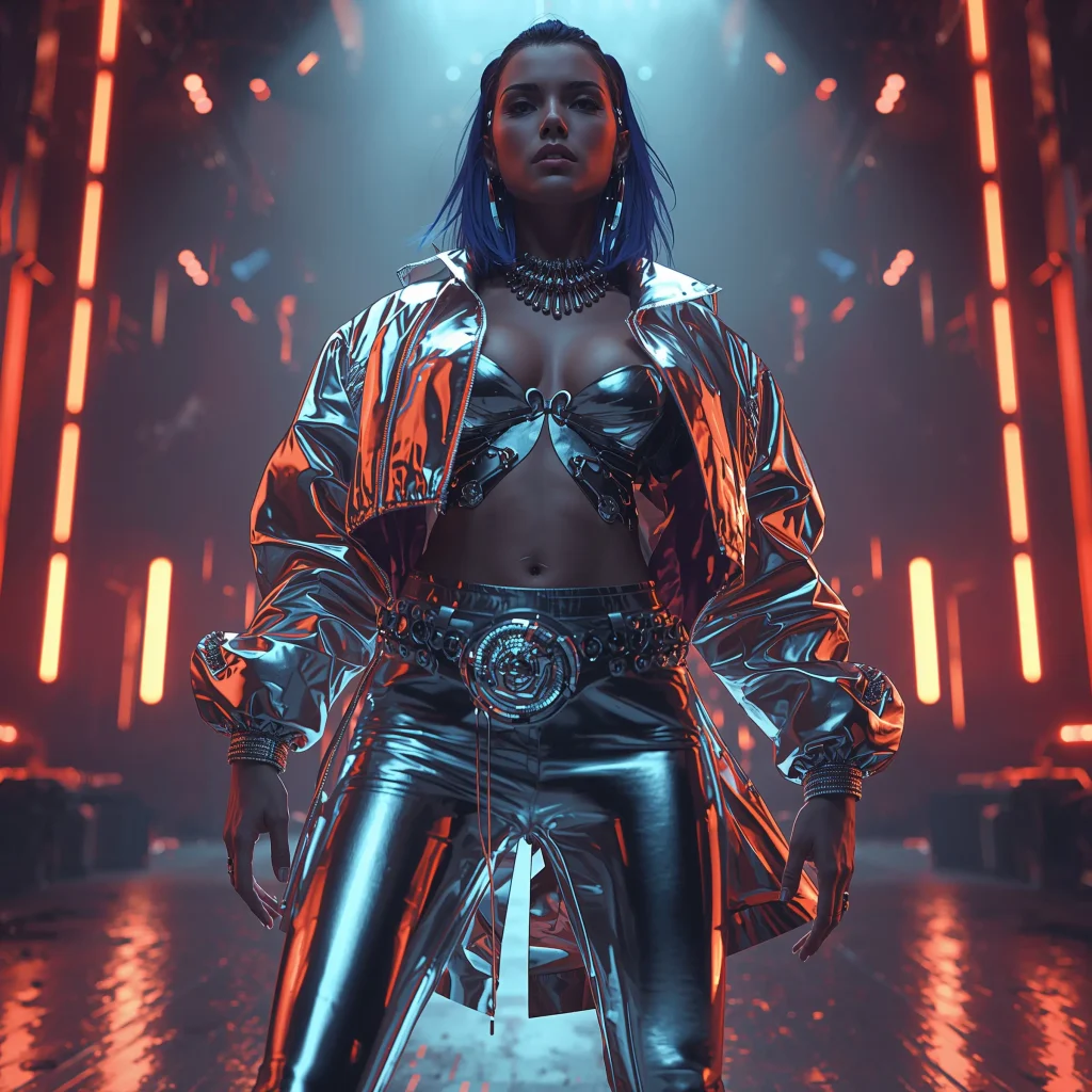 Channel your inner space cadet with metallic futuristic fashion that looks straight out of 2050. Silver or gold metallic pants paired with crop tops or bodysuits create that sci-fi aesthetic. Reflective accessories and holographic bags amplify the effect.