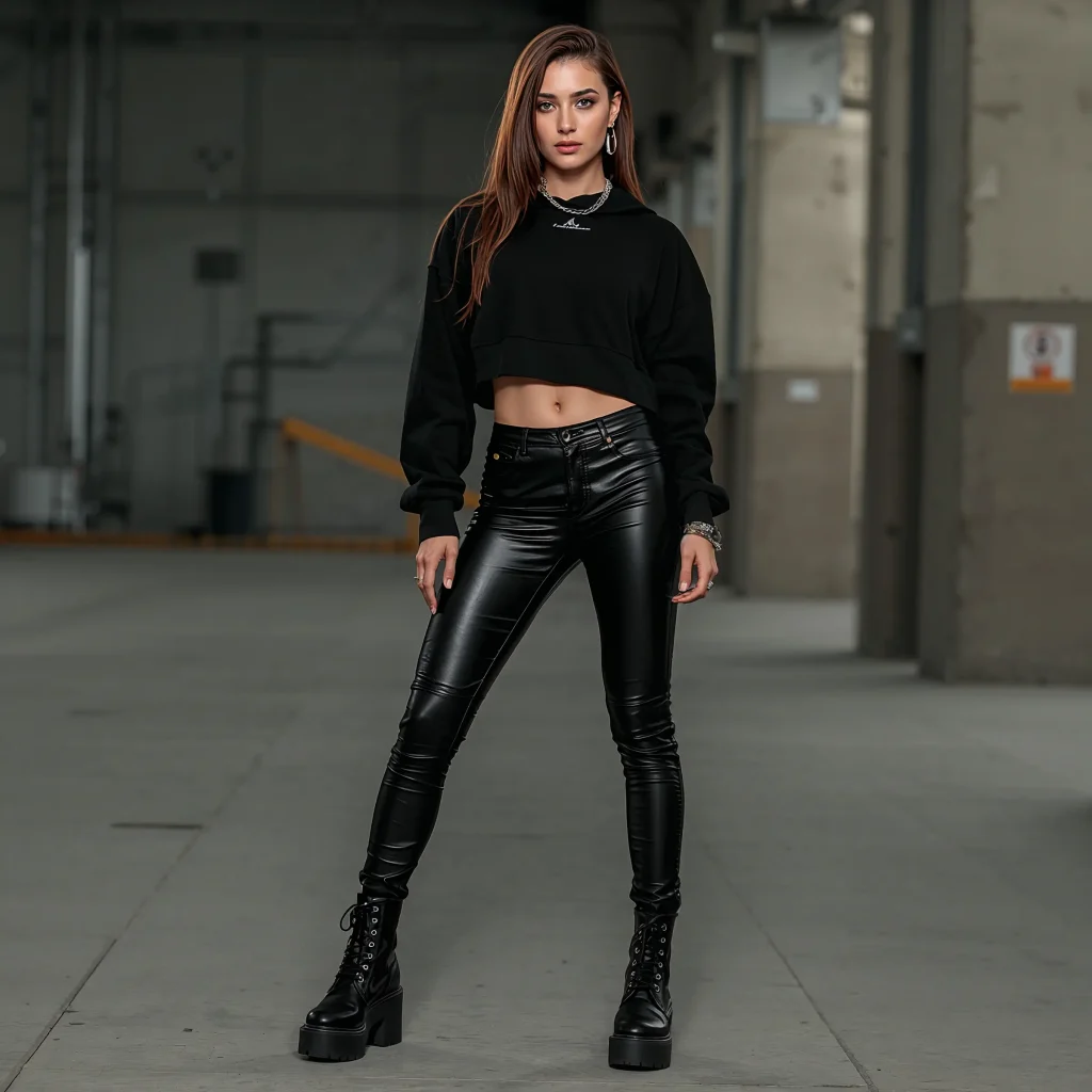 Want to look like you just stepped out of a music video? Leather pants and cropped hoodies are your ticket to instant edge.
