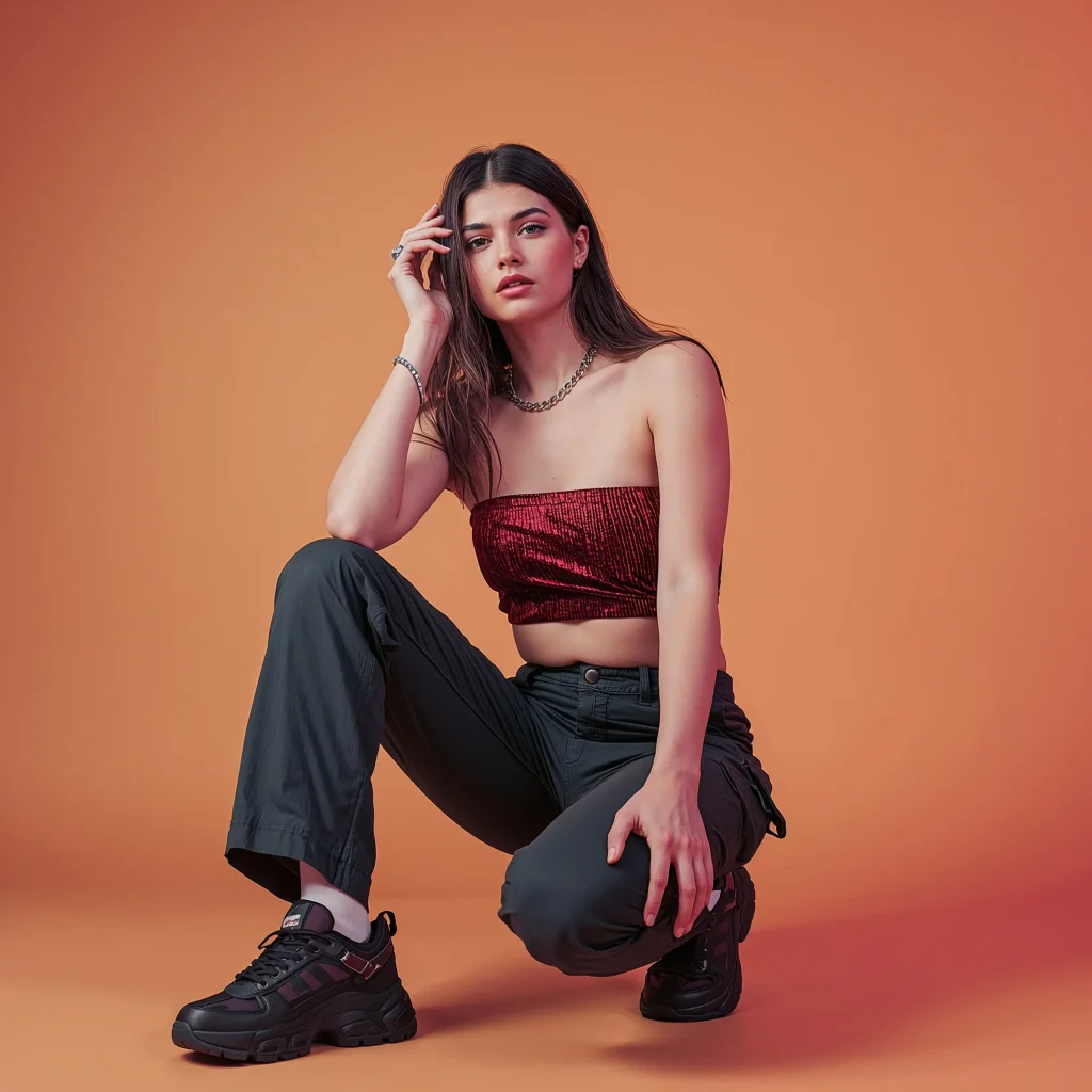 This combination shouldn’t work, but somehow it absolutely did. Velvet tube tops brought the luxe factor while cargo pants kept things street. It was the perfect mix of fancy and casual that defined early 2000s style. Plus, all those pockets came in handy for your flip phone and lip gloss collection.