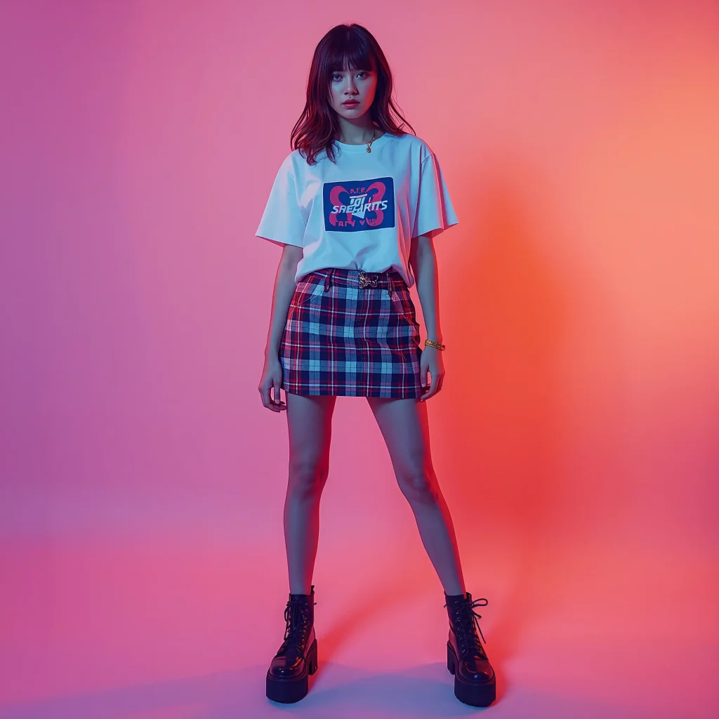 The punk-prep mashup of graphic logo tees with plaid mini skirts was Avril Lavigne meets Cher from Clueless. Designer logo tees (or convincing knockoffs) tucked into pleated plaid minis created this weird but wonderful style hybrid that somehow worked in every club setting.