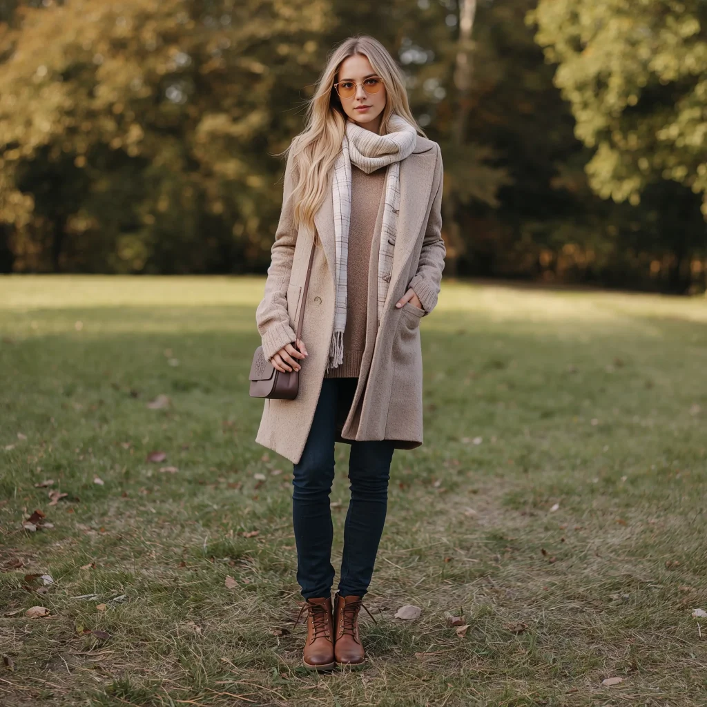 Mixing these shades creates depth and interest without relying on bold colors. I built an entire fall wardrobe around cream, camel, and chocolate brown, and people constantly ask if I hired a stylist.