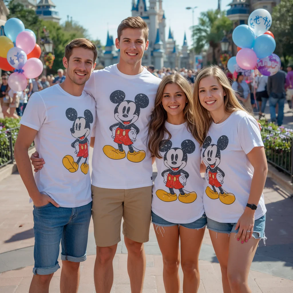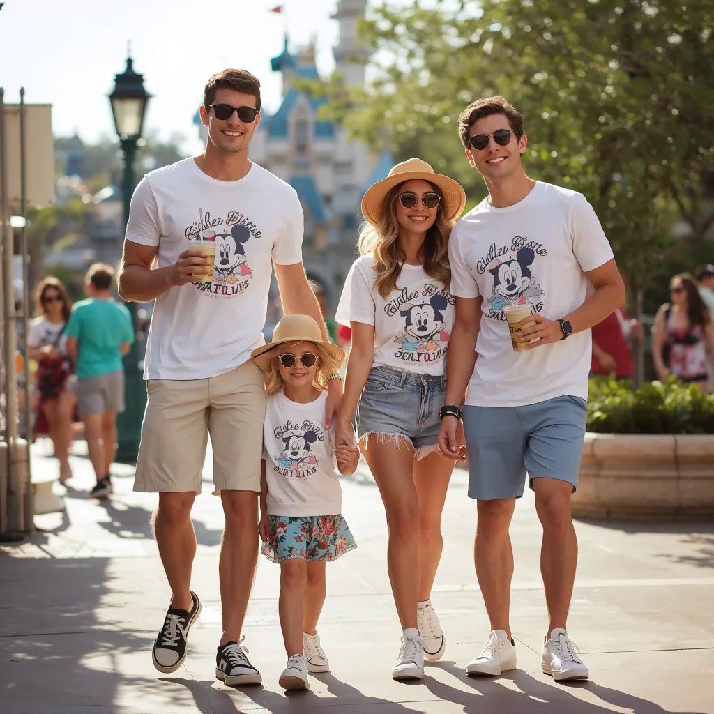The trick is balance. Maybe dad wears a simple black polo with Mickey buttons as accents. Mom rocks a Minnie bow headband with a cute sundress. Kids can go wild with full character tees. See what I’m doing here? Everyone’s coordinated but not clone-like.