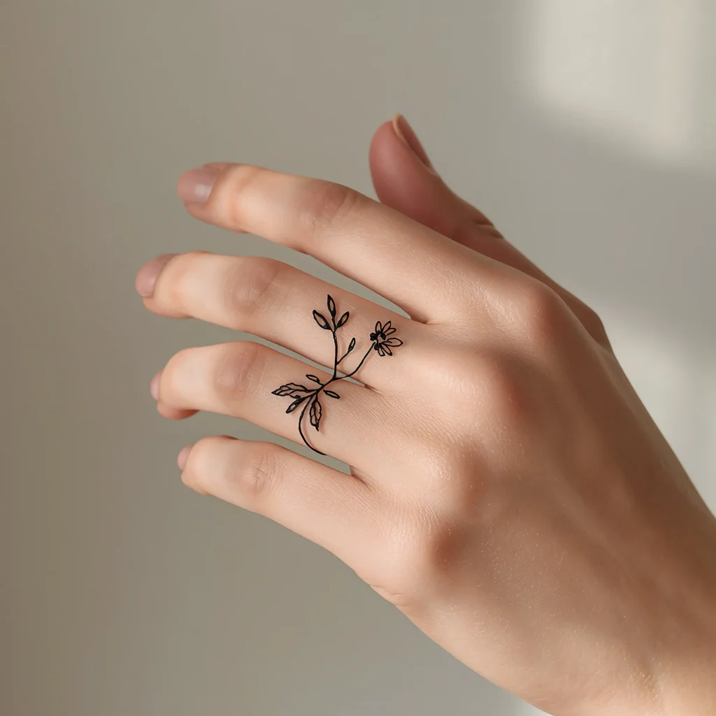Picture this: a delicate vine wrapping around your finger like nature’s own ring. The minimalist floral vine tattoo has become my absolute favorite recommendation for first-timers, and here’s why it works so beautifully.