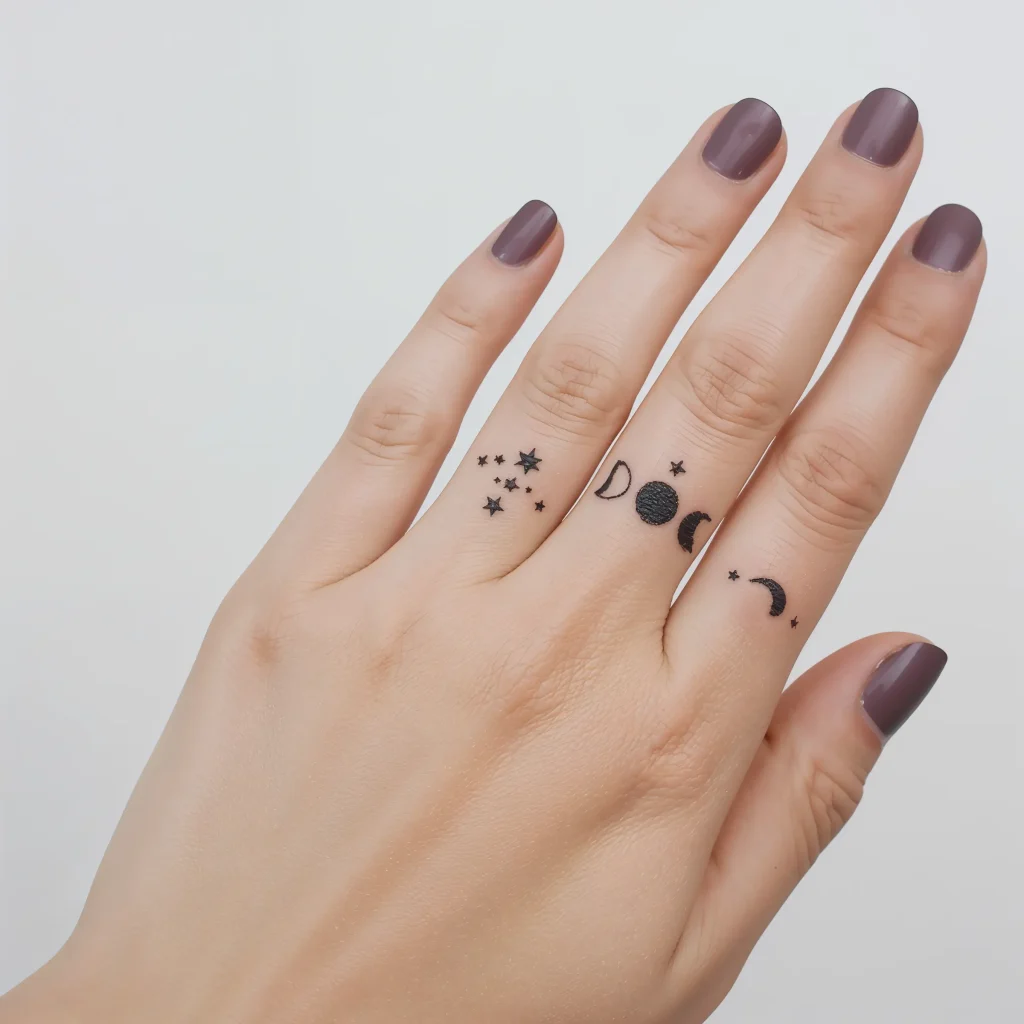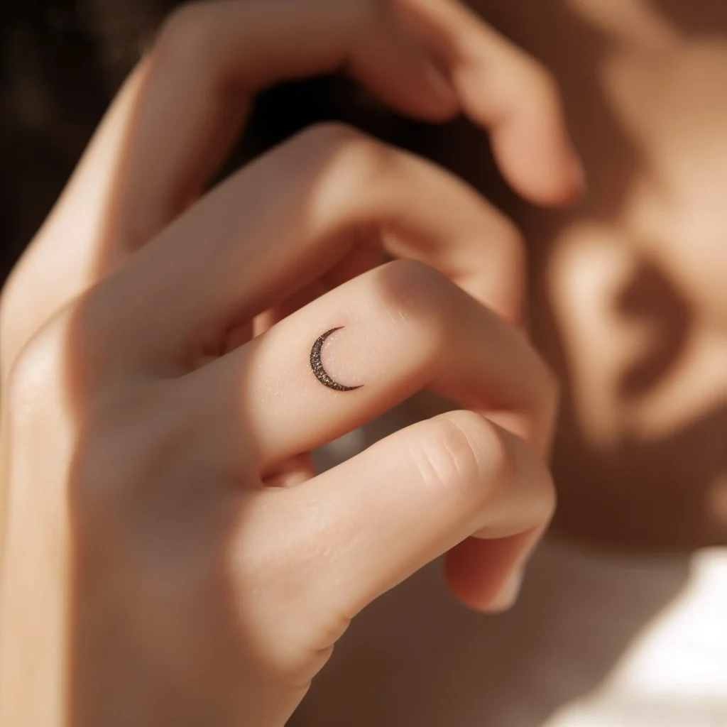 The placement options are endless here. You can go classic with it on the side of your finger, or get playful and position it near your knuckle. Some of my friends have even gotten matching moons in different phases across multiple fingers – talk about commitment to the lunar aesthetic!