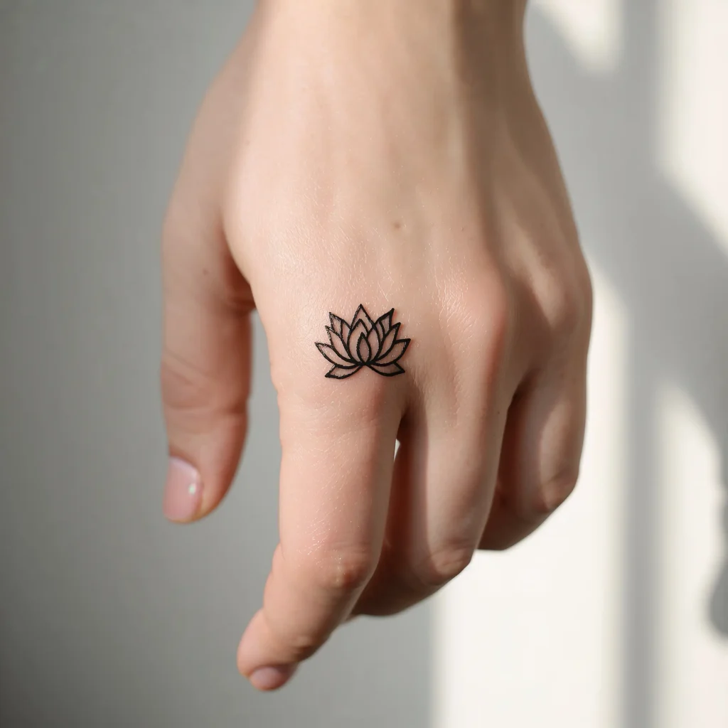 On fingers, the lotus works best when kept simple. Think clean lines forming the basic petal shape rather than intricate, detailed botanical drawings. The symmetry of the lotus also means it looks great from any angle, which is perfect for a placement that’s constantly in motion.