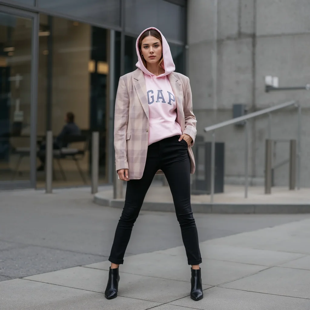 Want to blow people’s minds? Layer your Gap hoodie under a blazer. This high-low combination shouldn’t work, but somehow it absolutely does. It’s like the fashion equivalent of putting fries on your burger – unexpected but brilliant.