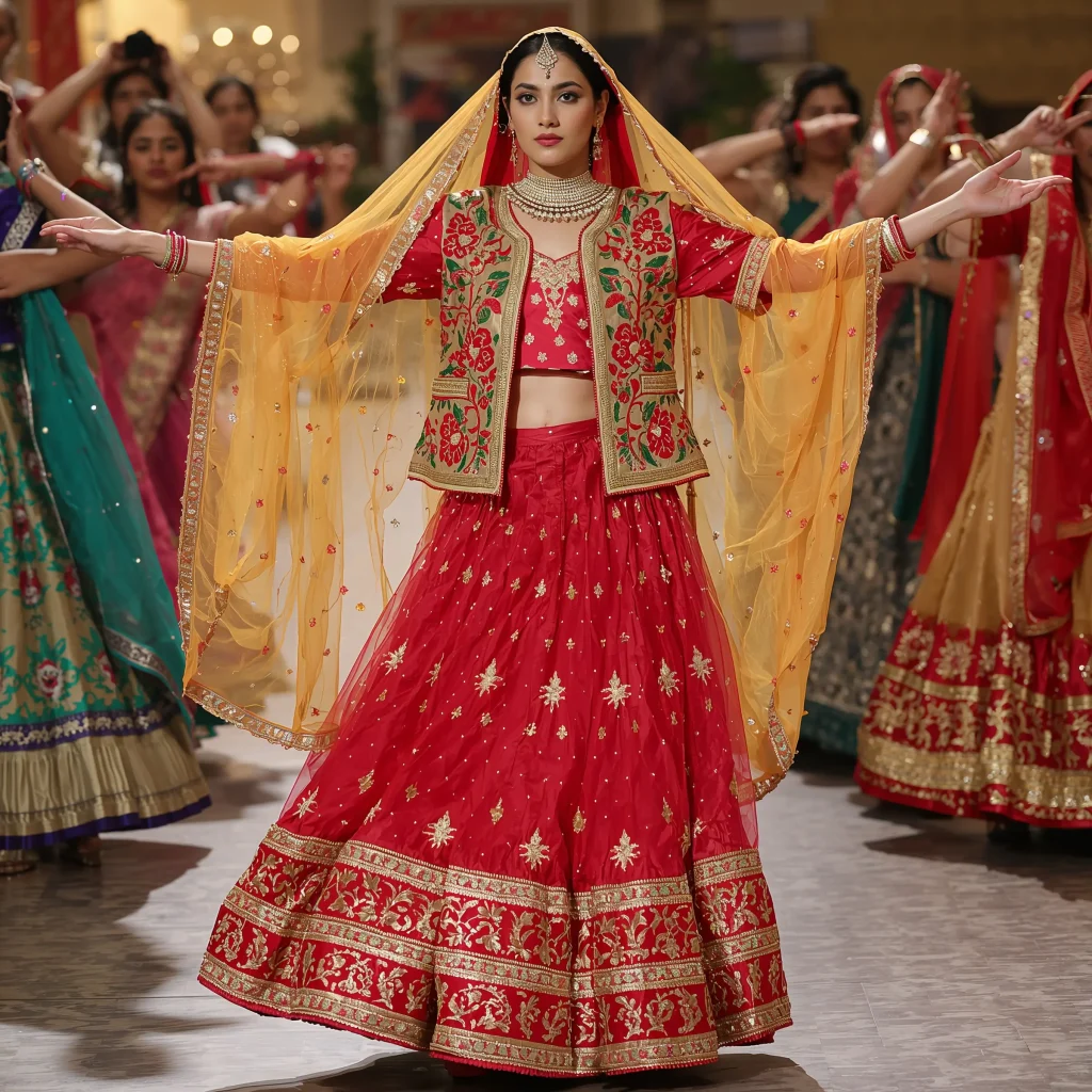 What I love most about jacket cholis? They transform a simple skirt into a complete ensemble. You can literally wear a basic flared skirt, throw on an embellished jacket choli, and suddenly you’re Garba-ready!