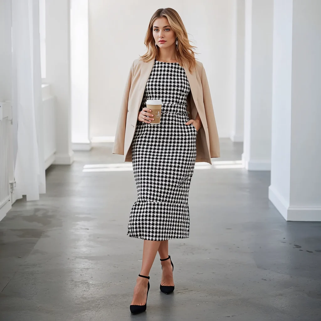The blazer does double duty here – it tones down the playfulness of gingham while adding authority to your overall presence. Choose a blazer in a complementary solid color: camel, navy, or classic black all work beautifully.