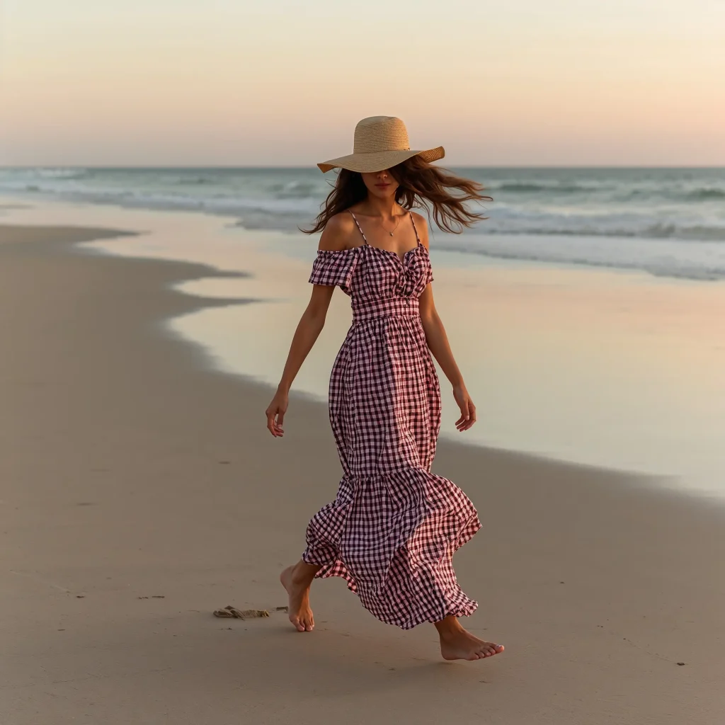 Beach days call for effortless style that handles sand, sun, and seafood shacks. A gingham maxi delivers on all fronts while keeping you Instagram-ready from sunrise to sunset.