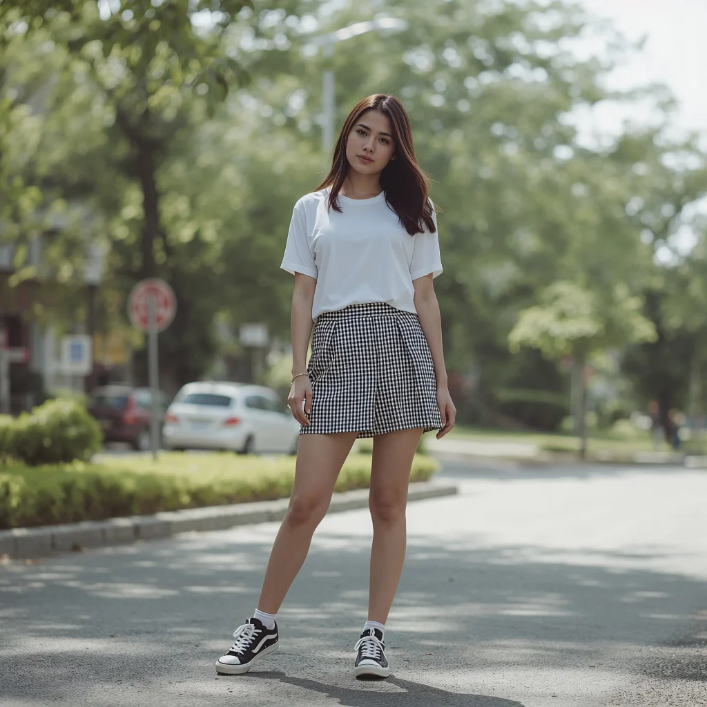 Who says gingham can’t be edgy? Graphic tees bring that cool-girl vibe to the traditionally sweet pattern. It’s like mixing sugar and spice – unexpected but totally works.