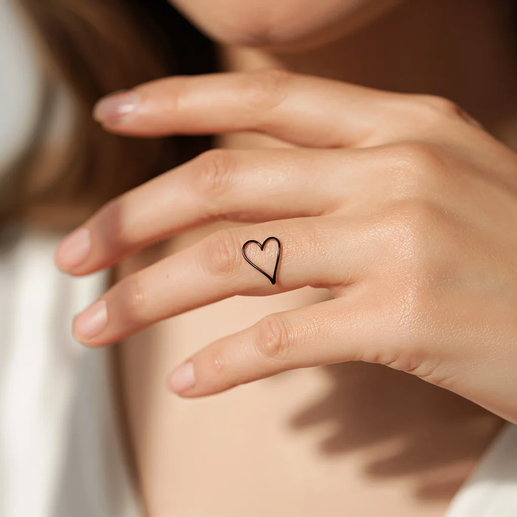 Let’s start with the classic that never fails – the minimalist heart outline. I know what you’re thinking: “Isn’t that a bit basic?” But hear me out. There’s something timelessly elegant about a tiny heart on your finger that just works.