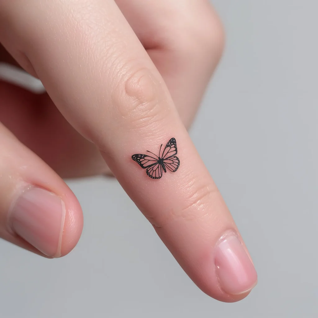 I’ve seen butterflies placed everywhere from the knuckle (brave choice) to the inside of the finger (hidden surprise). My personal favorite? Side placement where the butterfly looks like it just landed on your finger for a quick rest.