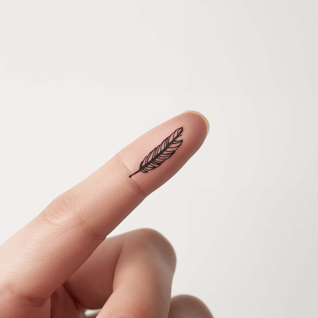 What I love about feather tattoos is how they naturally follow the shape of your finger. They can curve along the side or stretch down the length, creating this organic flow that just works.