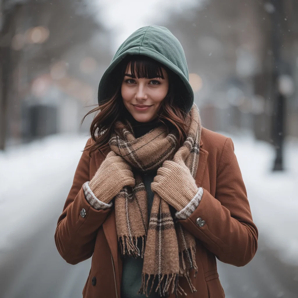 I love how a green hoodie looks peeking out from under a camel coat – the color combination feels expensive even if your whole outfit came from Target. Add a chunky scarf, beanie, and some weather-appropriate boots, and you’re winter-ready without sacrificing style.
