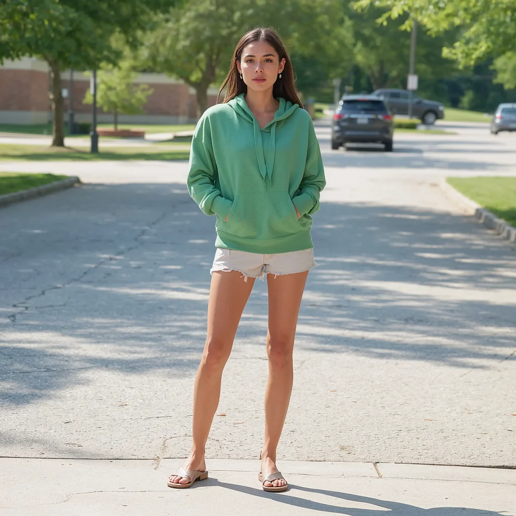 Pair your thinnest green hoodie with white linen shorts or a flowy midi skirt. The unexpected combination of hoodie and summer pieces creates this interesting contrast that fashion-forward people love. I wear mine with bike shorts and sandals for a sporty-casual vibe that works for everything from beach trips to backyard barbecues.