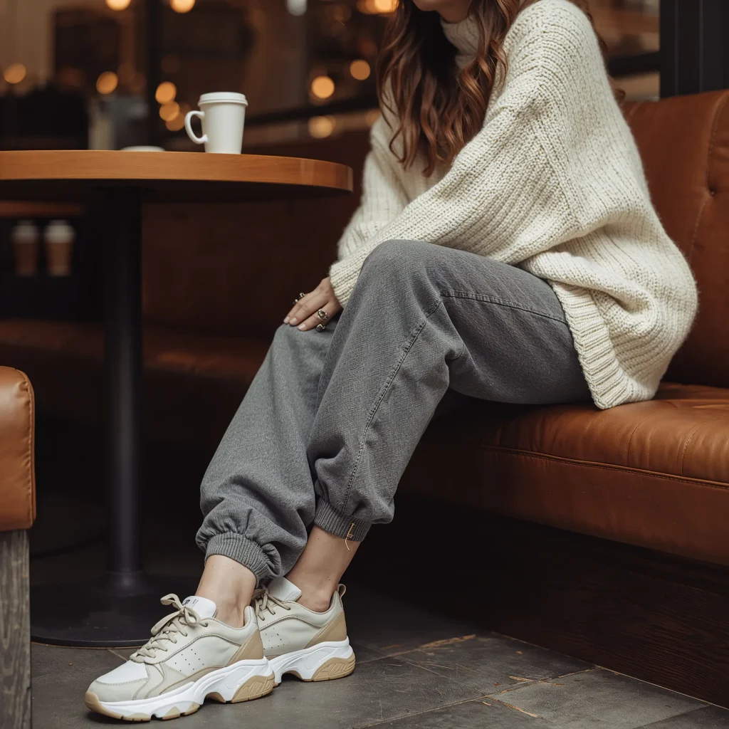 The contrast between sporty and stylish makes this outfit work for everything from coffee runs to casual dates.