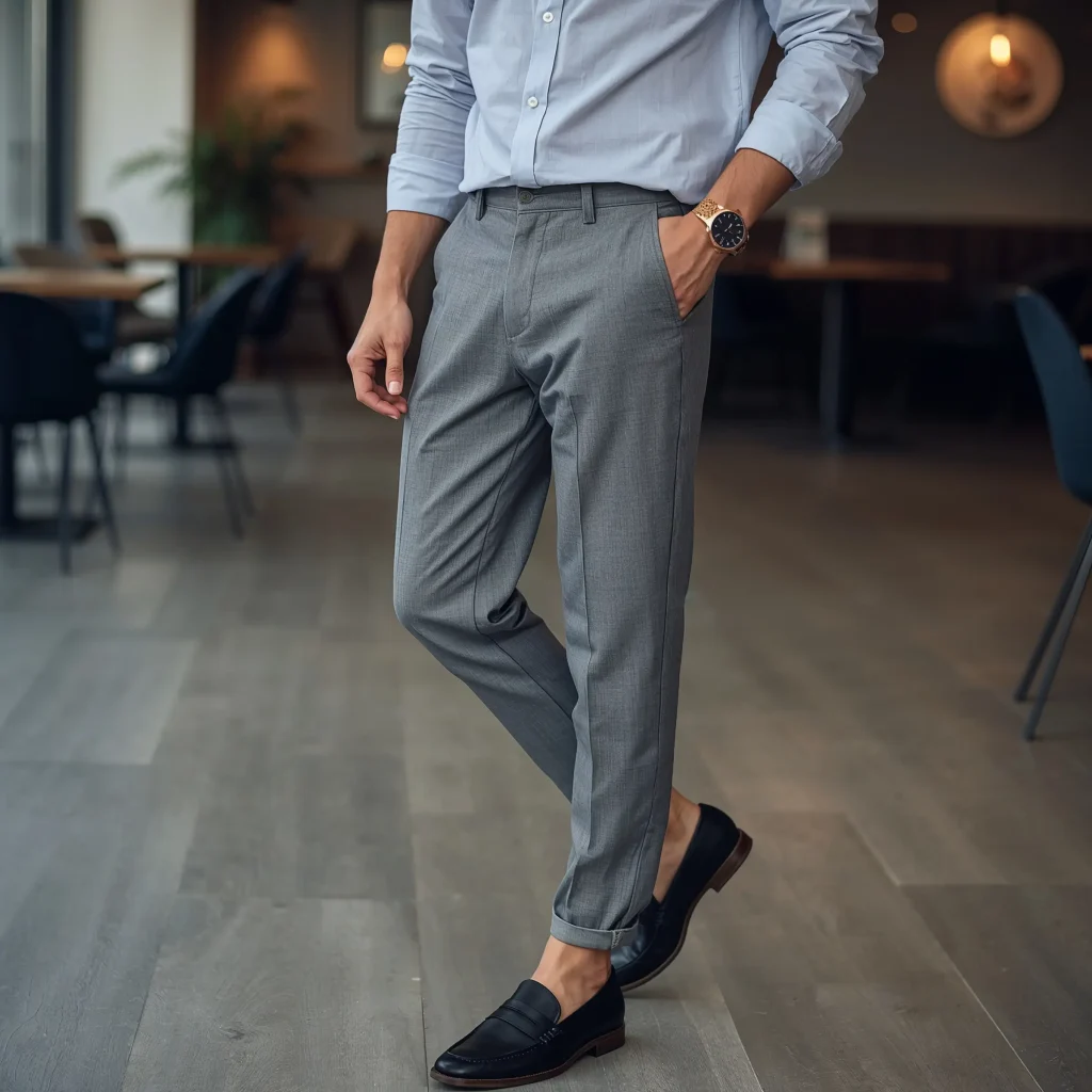 Add a leather belt, a nice watch, and maybe a silk pocket square if you’re feeling fancy. This outfit says “I understand dress codes but I’m not boring about it.”