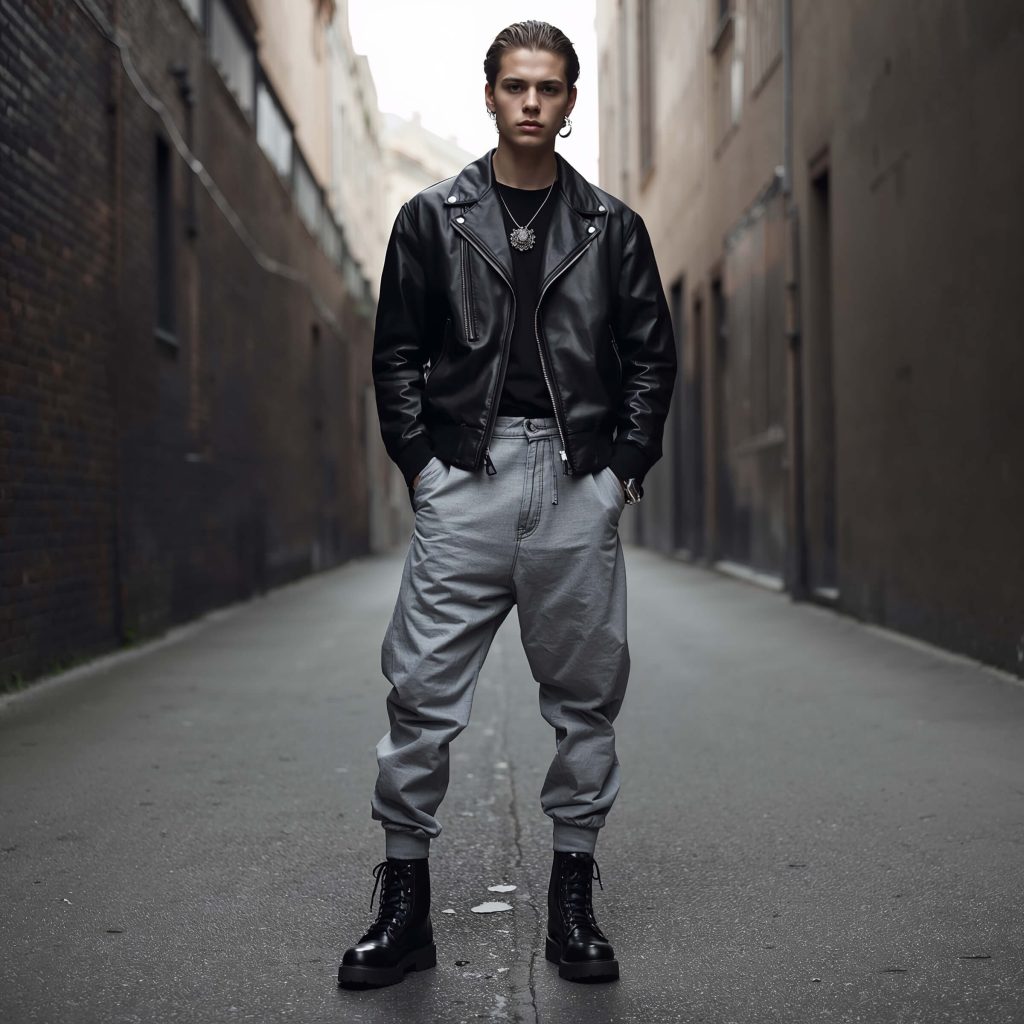 My go-to formula: grey baggy jeans, black fitted tee, black leather jacket (real or faux – we don’t judge), and ankle boots. Add some silver hardware through jewelry or bag details, and you’ve got that effortlessly cool vibe down.