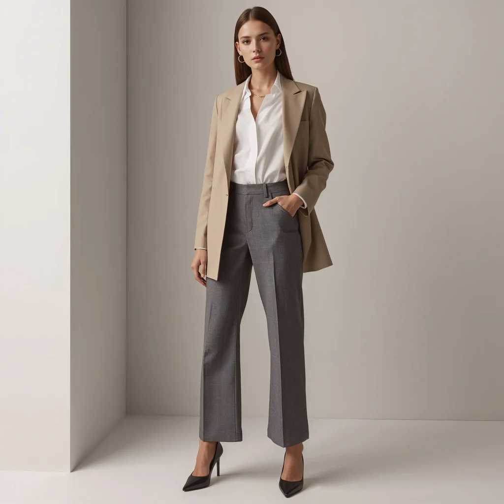 This outfit works everywhere – from office casual Fridays to weekend brunches. It’s the fashion equivalent of a neutral accent wall: always appropriate, never boring.