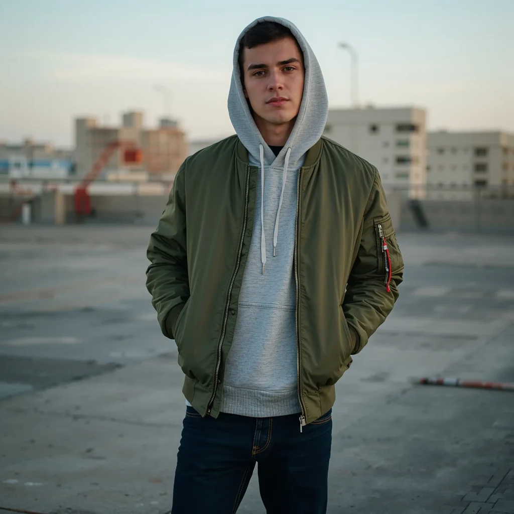 The bomber jacket has made a massive comeback, and layering it over a hoodie creates this perfect military-meets-street aesthetic. This combination works year-round and adapts to almost any style preference.