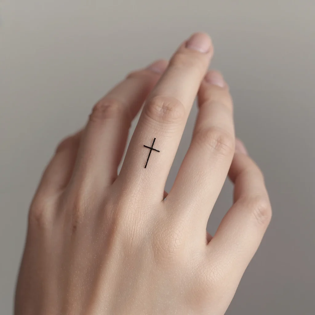 Religious or not, cross tattoos carry deep meaning for many women. The simple, clean lines of a minimalist cross work perfectly on the inner finger, creating a subtle statement of faith or remembrance.