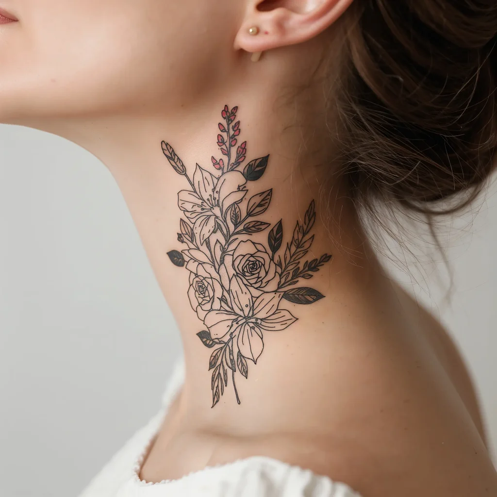 Elegant Floral Neck Tattoos for Her