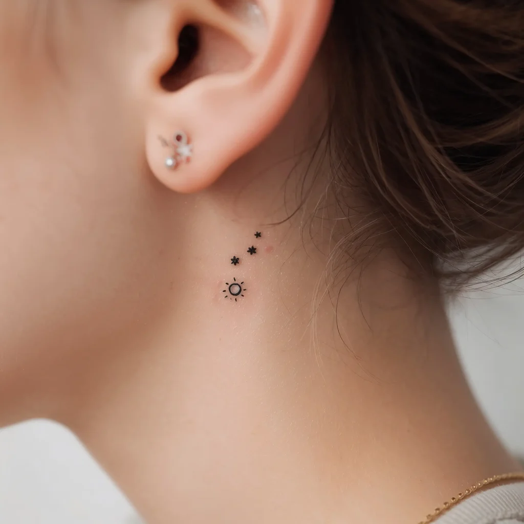 The neck is already such a delicate canvas, right? Adding a minimalist design enhances that natural elegance rather than overwhelming it. I’ve seen women rock single dots, tiny crescents, or even abstract line work that follows the natural curve of their neck. The result? Pure sophistication.