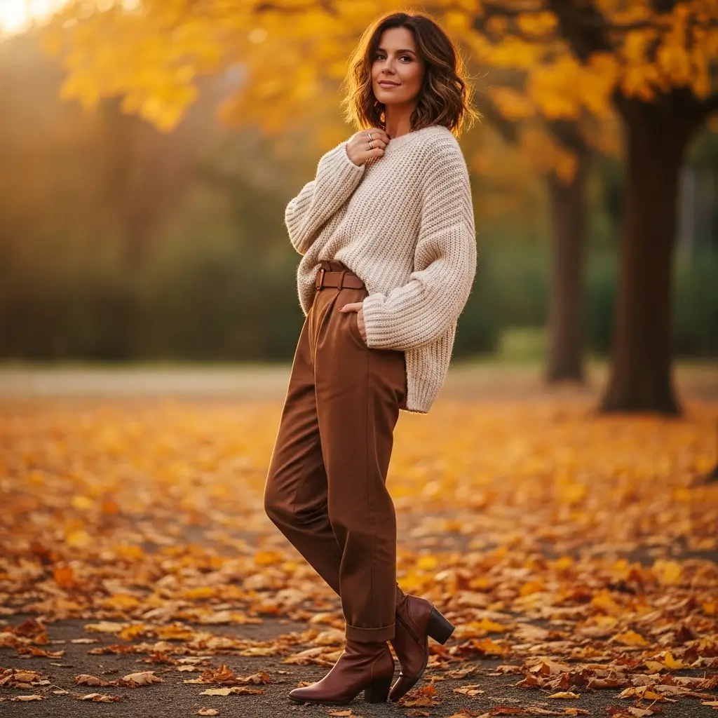 Cozy Autumn Sweater with Brown Pants
