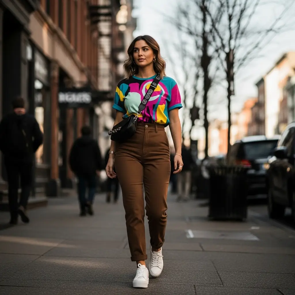 Street Style with Graphic Tee and Brown Pants