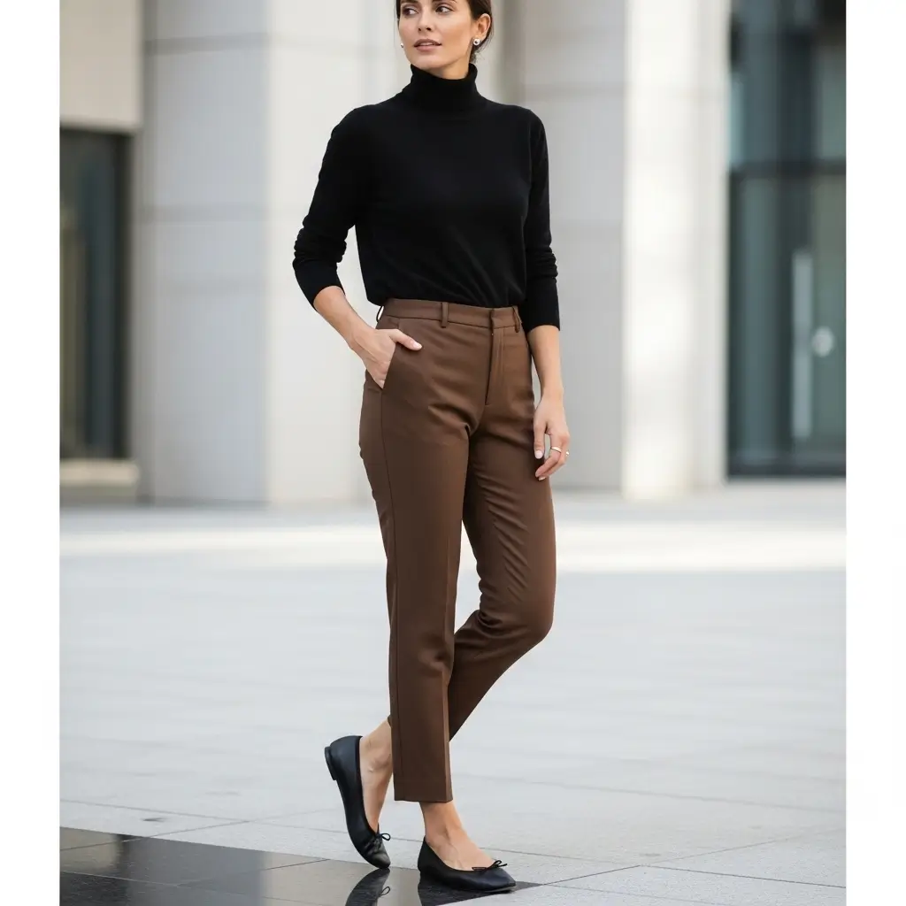 Minimalist Black Top with Brown Pants