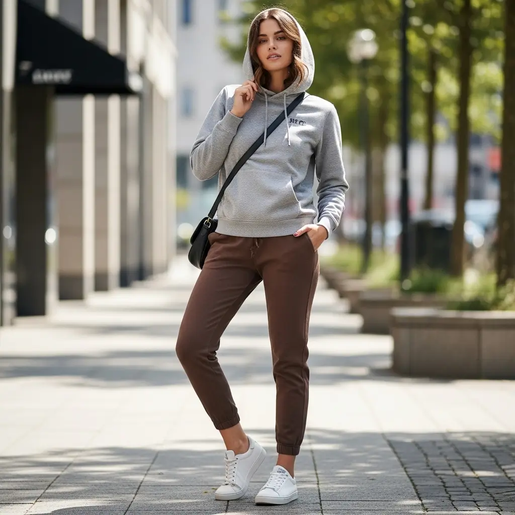 Sporty Look with Hoodie and Brown Pants
