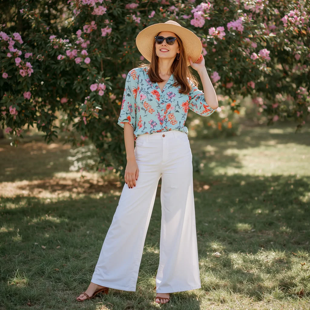 Nothing screams summer quite like white pants paired with a breezy floral blouse. This combination basically turns you into a walking garden party, and honestly, who doesn’t want that energy?