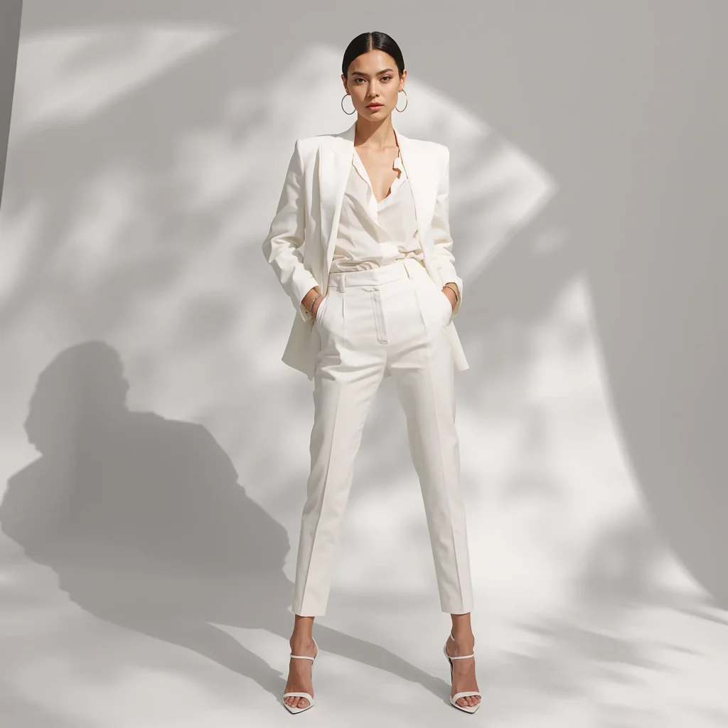 Who says white pants can’t be professional? Pair them with a structured blazer and heels, and suddenly you’re the best-dressed person in every Zoom call. This outfit screams “I have my quarterly reports ready AND I look fabulous doing it.”