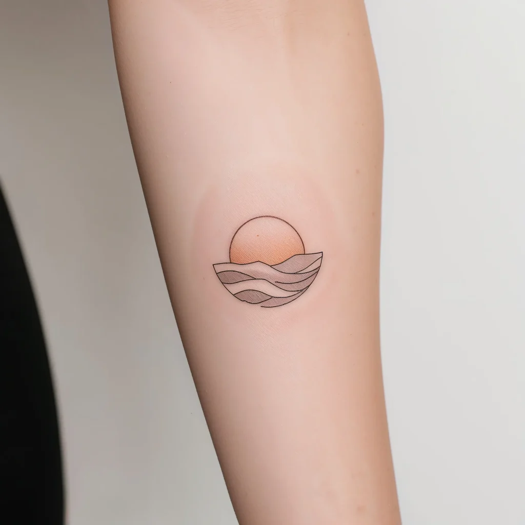 The Japanese-inspired versions absolutely blow my mind. Hokusai-style waves with a simple circle sun create this timeless look that never gets old. Or go full minimalist with just three curved lines for waves and a dot for the sun.