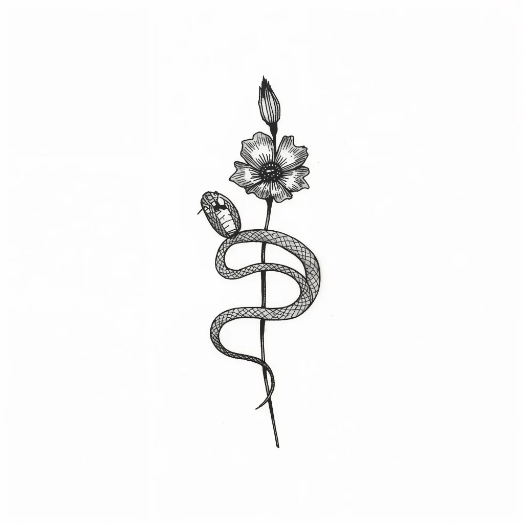 Snakes get such a bad rap, but serpent and flower combinations create this gorgeous duality that’s hard to resist. The snake can be protective or threatening, the flower innocent or poisonous – the interpretation stays yours.