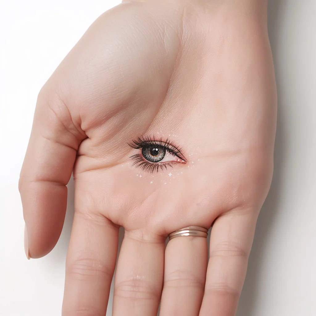 Realistic eyes as tattoos used to require massive amounts of space. Not anymore. Micro realism techniques mean palm-sized eyes look photographic, complete with light reflections and individual lashes.