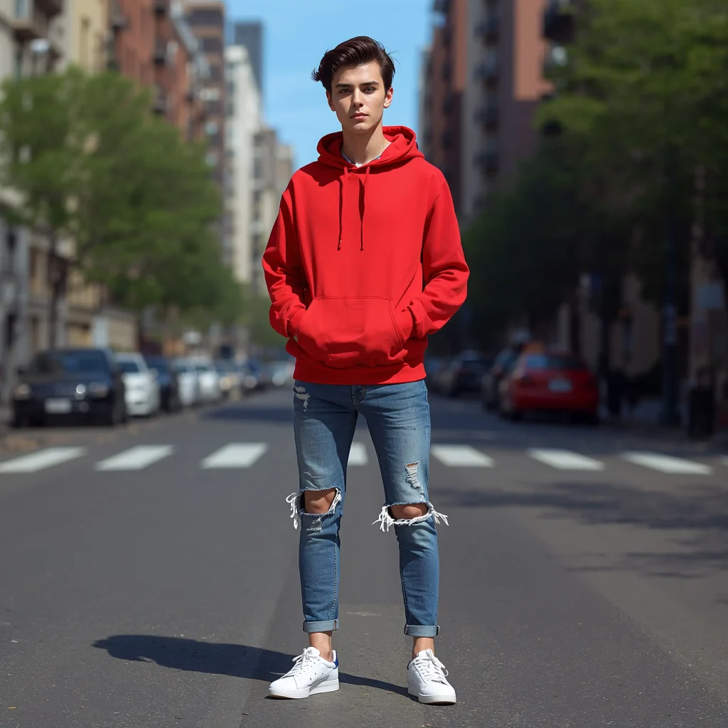 Street style and red hoodies go together like coffee and Monday mornings – they just make sense. The key to nailing this look is confidence mixed with intentional casualness. Start with your red hoodie (obviously) and pair it with some distressed black jeans. The contrast creates visual interest without trying too hard.