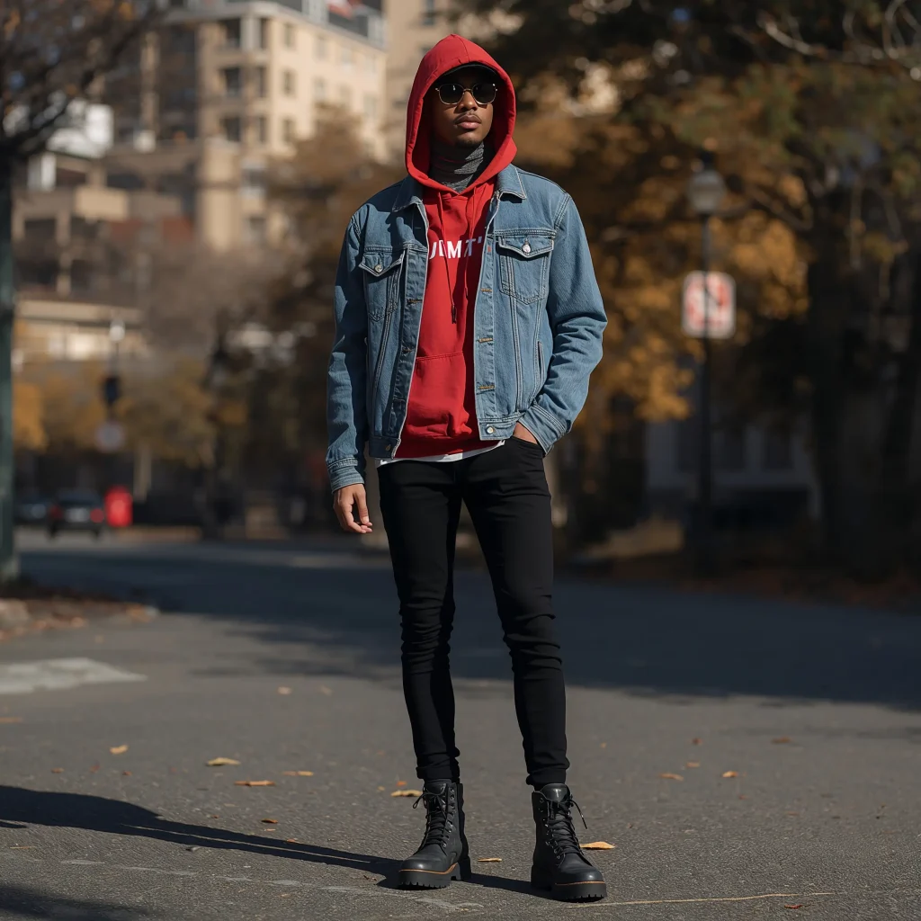 Layering with a red hoodie is where things get interesting. The hoodie becomes your pop of color while the jacket adds structure and sophistication. My personal favorite? A black leather jacket over a red hoodie. The tough-meets-soft contrast creates visual tension that’s absolutely magnetic.
