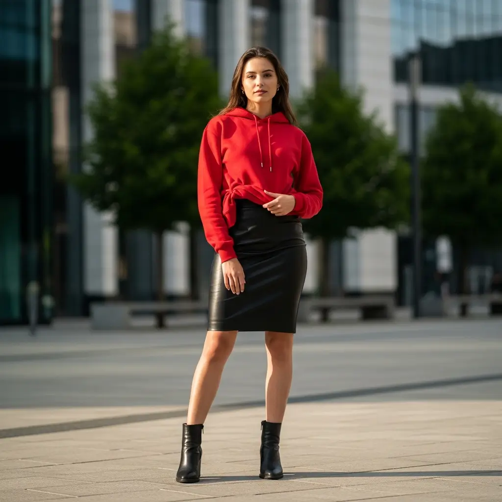 Who says hoodies can’t be feminine? Pairing a red hoodie with a skirt creates an unexpectedly chic combination that challenges traditional fashion rules. I discovered this combo by accident when I was running late and grabbed the first clean items I saw. Best fashion mistake ever.
