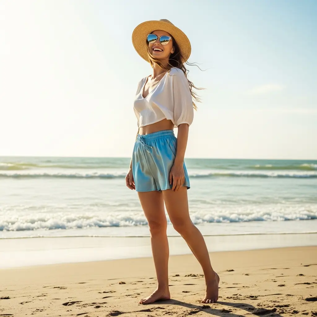 Who says silk can’t do casual beach days? I discovered this combo during a weekend getaway and now it’s my summer uniform. Lightweight silk shorts paired with a breezy tank top or bandeau creates the perfect beach-to-bar outfit that doesn’t scream “I just came from the sand.”