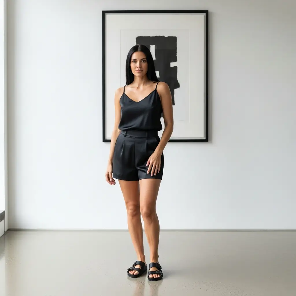 Monochrome Minimalist Silk Shorts Look